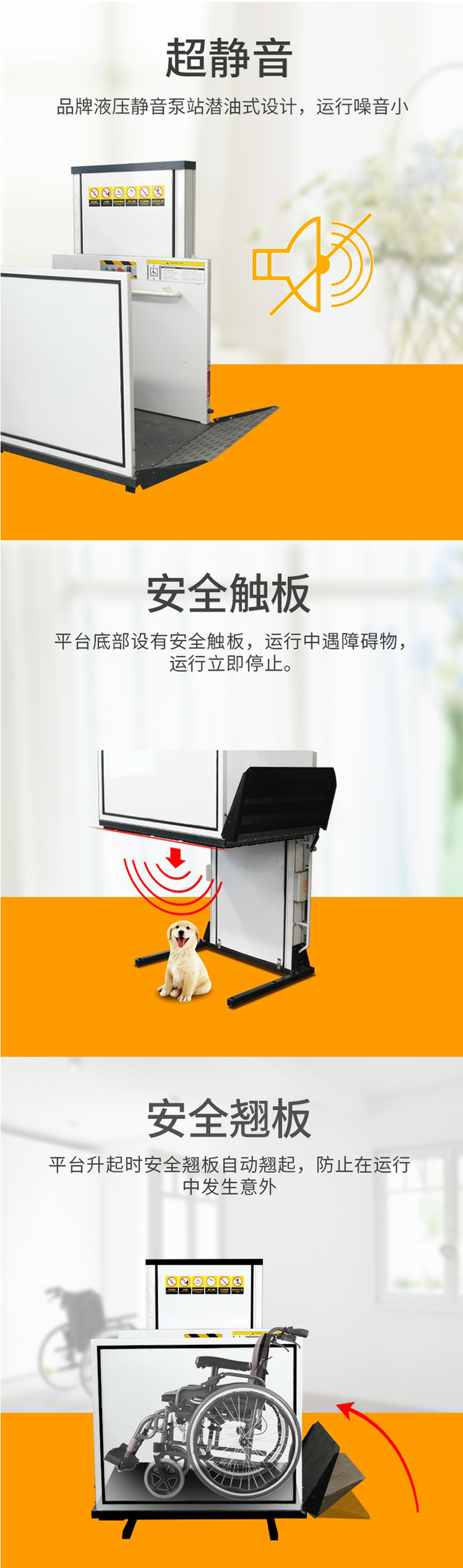 无障碍升降平台一般升降高度在3米以内,轿厢尺寸根据家中空间进行设计制作。我司可派技术人员免费到家中勘察测量,并给出详细的技术方案后,再进行生产与安装,满足客户的使用要求。