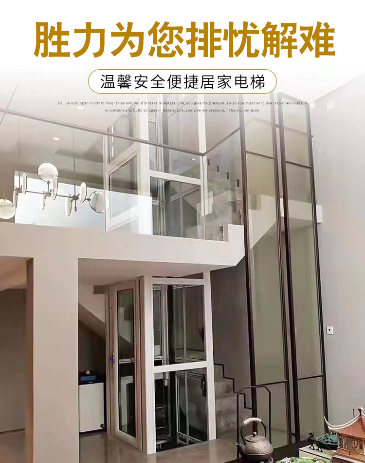 家用电梯是一种安装在私人住宅中,仅供家庭成员的楼层上下通行的小型电梯。家用电梯的安装无需地坑与井道,可直接安装与地面,占地面积小,二三层别墅、阁楼、地下室、室内外均可安装。提升高度、轿厢尺寸均可定制,胜力机械可免费上门测量,为您提供私人定制。