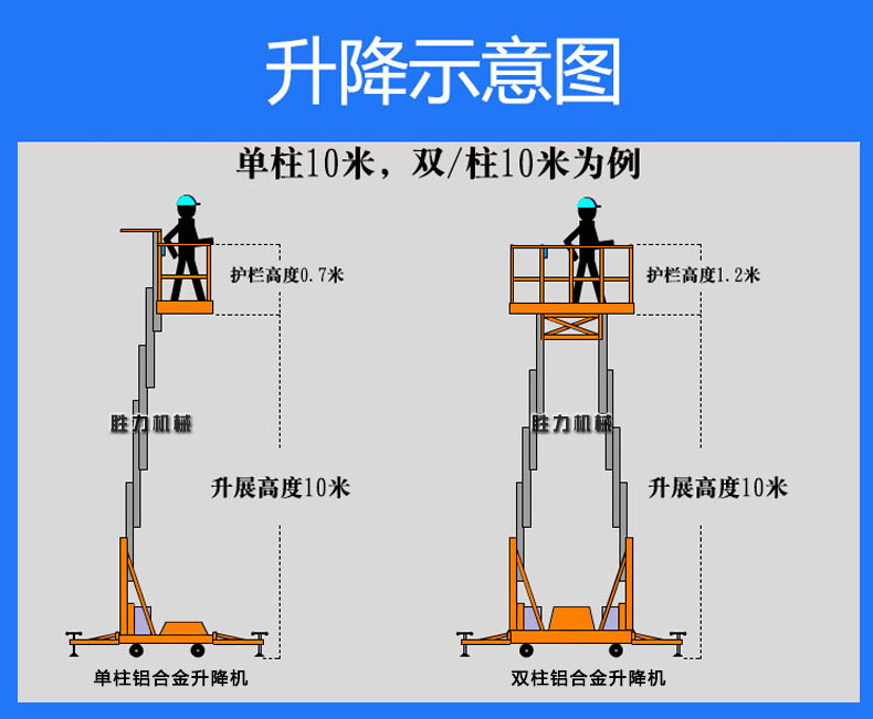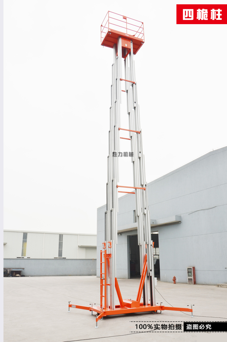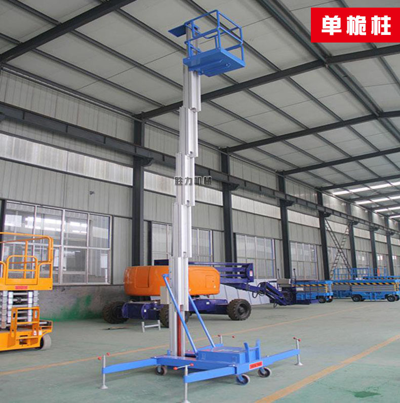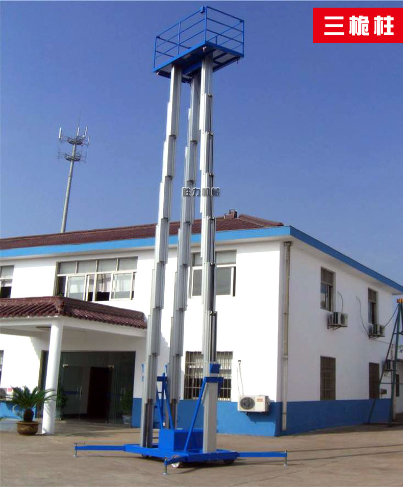 移动铝合金升降平台是移动升降机常用的一种,根据举升高度大可分为单桅柱、双桅柱、三桅柱、四桅柱及六桅柱等。移动铝合金升降平台重量轻,体积小,对空间的要求很小,常规铝合金升降机大都可以通过电梯运输,所以它能在很小的空间内完成高空作业。在升降方面除了传统的交直流升降外,济南胜力液压机械还增加了无线遥控升降,优化了高空作业的灵活性,使高空作业方便快捷,提高了作业效率。移动铝合金升降平台被广泛应用到工厂、酒店、商场、学校、医院、车站、机场等各种需要高空作业的场所。