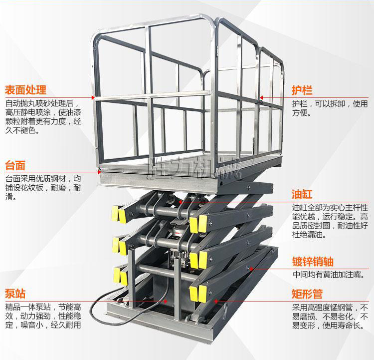 固定剪叉式升降平台是非标定制产品,请提供载重量、起升高度、台面尺寸等技术要求。如不确定尺寸,我司也可派技术人员免费到现场勘察测量,并给出详细的技术方案后,再进行生产与安装,满足客户的使用要求。