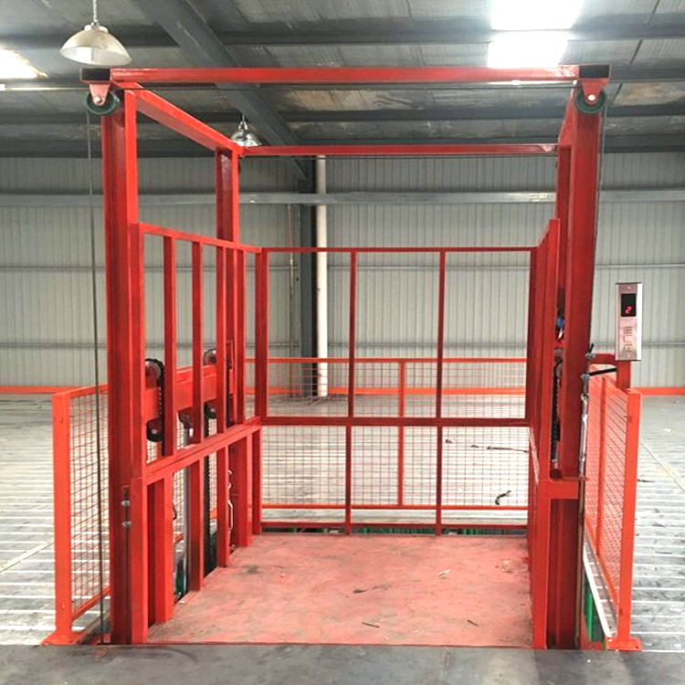 二层简易液压货梯梯是一种常见的液压升降设备,也被称为导轨链条式升降平台,平台主要采用液压油缸升降,通过链条和钢丝绳传动。