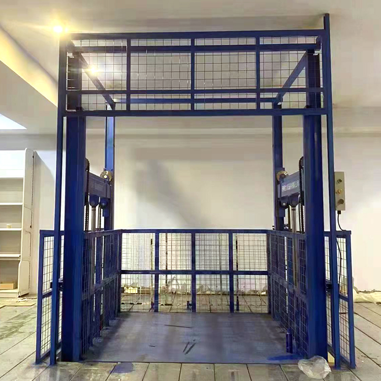 仓库升降货梯是一种液压升降设备,主要用于二三层以上的仓库、车间、超市等多层建筑物间的货物运输。仓库升降货梯是由导轨、链接、液压油缸、液压泵站、电控系统等组合而成的,因此也被称为导轨链条式升降平台。