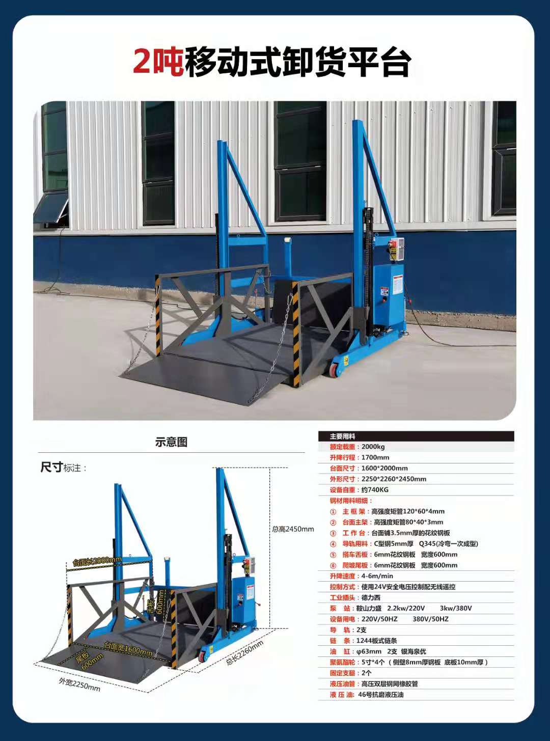 移动装卸平台常规可以分为2吨和3吨两种规格,升降范围在1.7米以内,适用于大多数常规集装箱车辆的高度。适用场所:仓库、车站、码头、储物流基地等行业??傻ト瞬僮鳎?/span>不占用空间,移动灵活方便,大大提高装卸作业效率。
