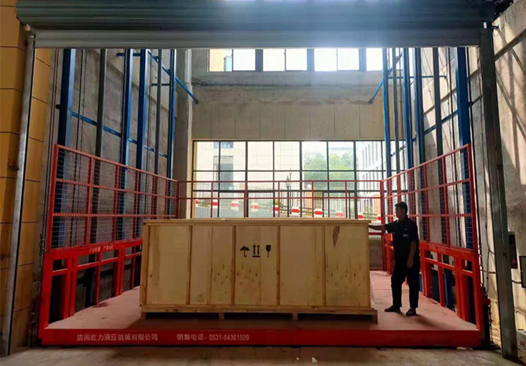 液压货梯的安装简单方便,不受现场空间的限制,无需机井房和井道,地坑只需20公分或不做地坑,室内室外都可以安装。液压货梯的自高高度20公分左右,把平台放入20公分的地坑后,设备与地面平齐,方便叉车等搬运工具进入平台轻松装卸作业,大量减少劳动力,并且大大提高了装卸作业的工作效率。 安全性能: