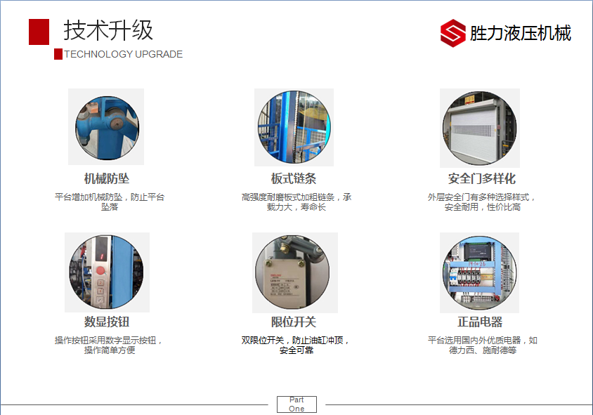 液压升降货梯安装环境不受限制,无需地坑和机房,室内外均可安装,特别适合于有多层工业厂房、仓库、超市等多楼层间的货物传输。产品特点:
